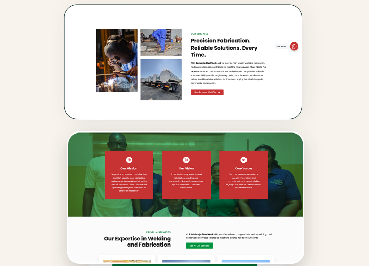 Real Results, Real Impact R. Odubanjo Steel Works Ltd Service: Website Design & Maintenance Category: Industrial Steel Solutions Location: Nigeria Project Duration: 7 Working Days Project Description R. Odubanjo Steel